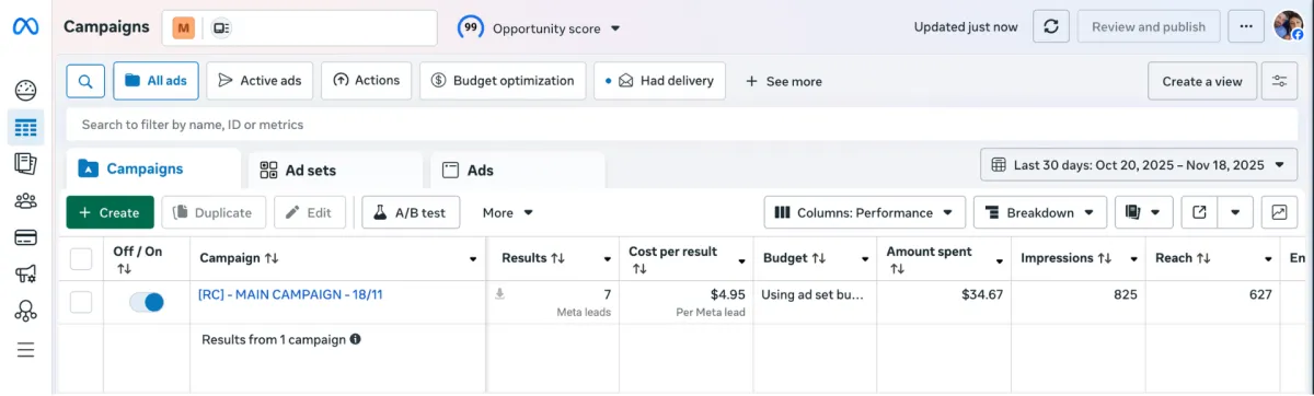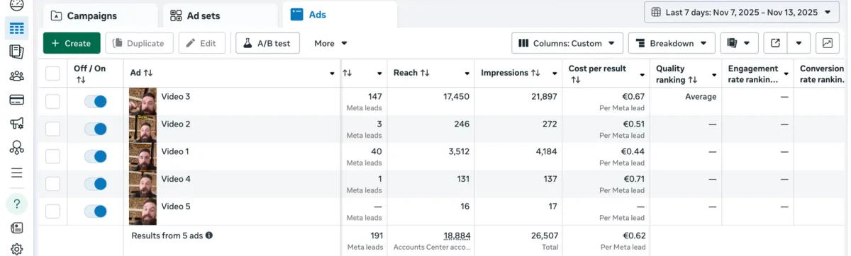 191 leads in 7 days at just €0.62 each.
