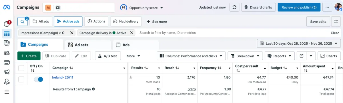 10 leads locked in at €4.77 in the first 24 hours. When the offer, creative & targeting are aligned results show up FAST. This is how we create predictable, profitable pipelines for service businesses.